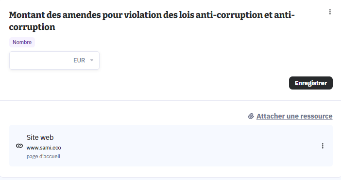 - Lien direct avec les indicateurs : Chaque document ou lien peut être associé à un ou plusieurs indicateurs CSRD/VSME. Vous visualisez en un coup d’œil quels points de données sont justifiés ou documentés.